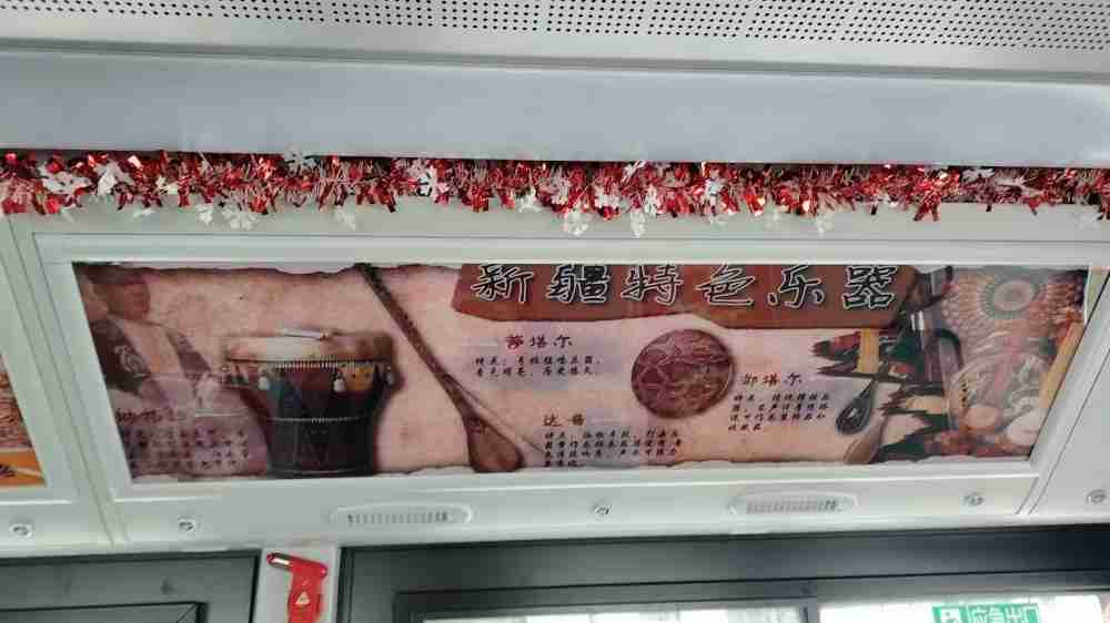 作为重点示范线路,10路专线在车辆改造上独具匠心。车厢内铺设红色防滑地毯,所有座位配备红色爱心棉垫,面料保暖卫生,为老年乘客、儿童及通勤族提供舒适呵护。车厢两侧布设10块主题宣传展板,以图文形式集中展示烤包子、手抓饭等特色美食及葡萄、哈密瓜、石榴等优质水果,宛如流动的民俗风情画卷,让乘客乘车途中直观感受地域文化魅力。