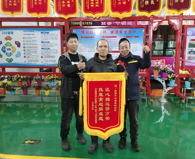 “感谢你们随叫随到的支持!”“是你们的坚守,让我们的运营没有后顾之忧!”赠旗现场,技术质量管理科科长冯旭辉握着维修师傅们的手,一句句朴实的话语满含感激。锦旗上“技术精湛 服务周到”“急人所急效率高 技高一筹品质优”的字样格外醒目,这不仅是对维修团队全年付出的高度肯定,更是双方携手保障公交运营的生动见证。维修服务中心及各车间负责人也纷纷表示,锦旗既是荣誉也是责任,未来将继续以更高标准做好车辆维保工作。
