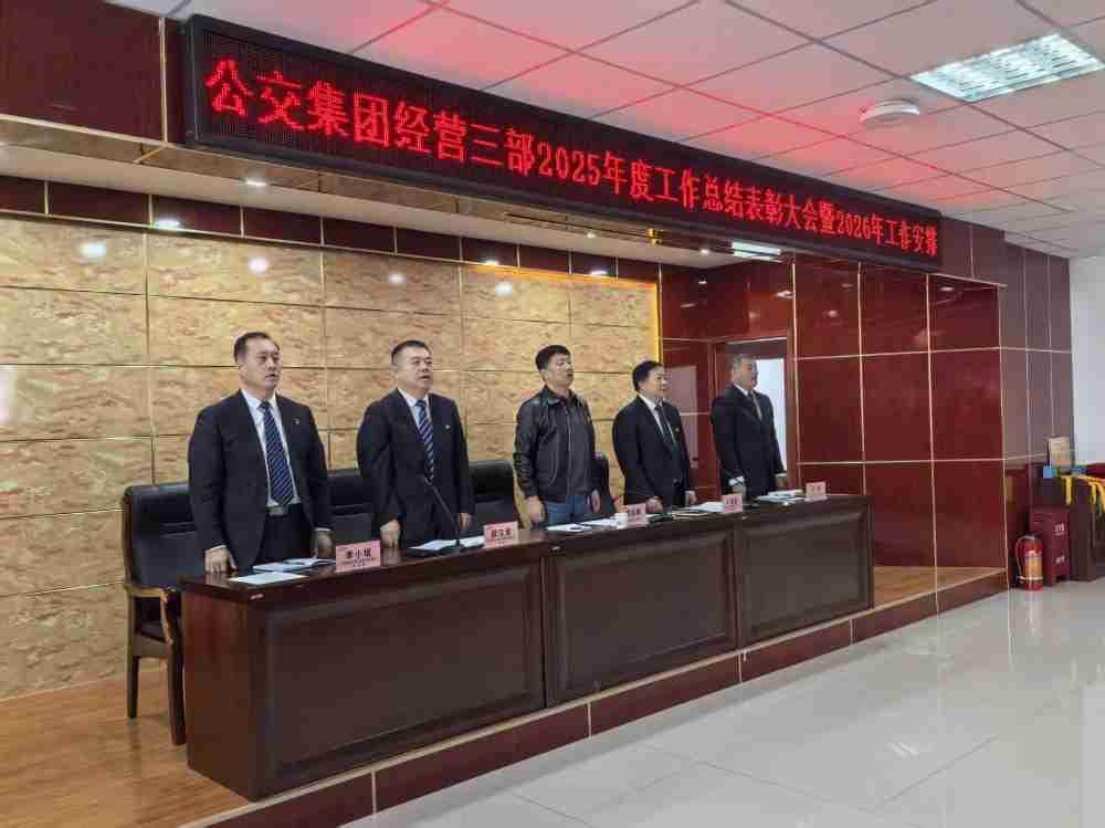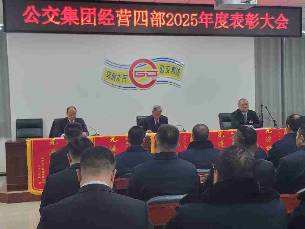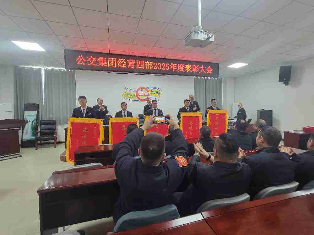 2026年1月28日上午11时30分,公交集团经营四部2025年度总结表彰大会暨2026年工作安排在经营四部一楼会议室隆重举行。会议以“表彰先进树标杆,凝心聚力启新程”为主题,全面总结2025年各项工作成效,隆重表彰在全年工作中涌现出的先进集体与个人,并紧扣“十五五”规划开局之年的战略要求,系统部署2026年重点工作。经营四部全体管理干部及各车队部分职工参会,共同见证荣耀时刻,凝聚奋进力量。