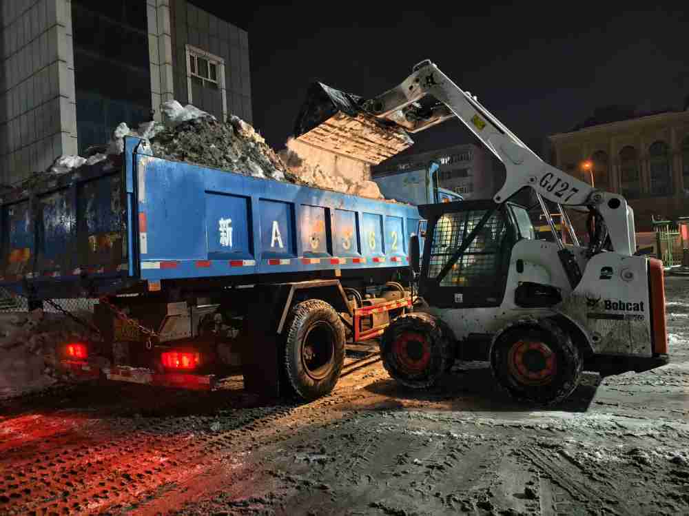 接到任务后,中心安全管理科牵头统筹,迅速组织机关各科室管理干部及场站保洁站长共计20余人组建应急清雪队伍,调配山猫滑移清扫车1辆、货运转运车1辆,全面开启“机械为主、人工为辅、协同作战”的清雪作业模式。