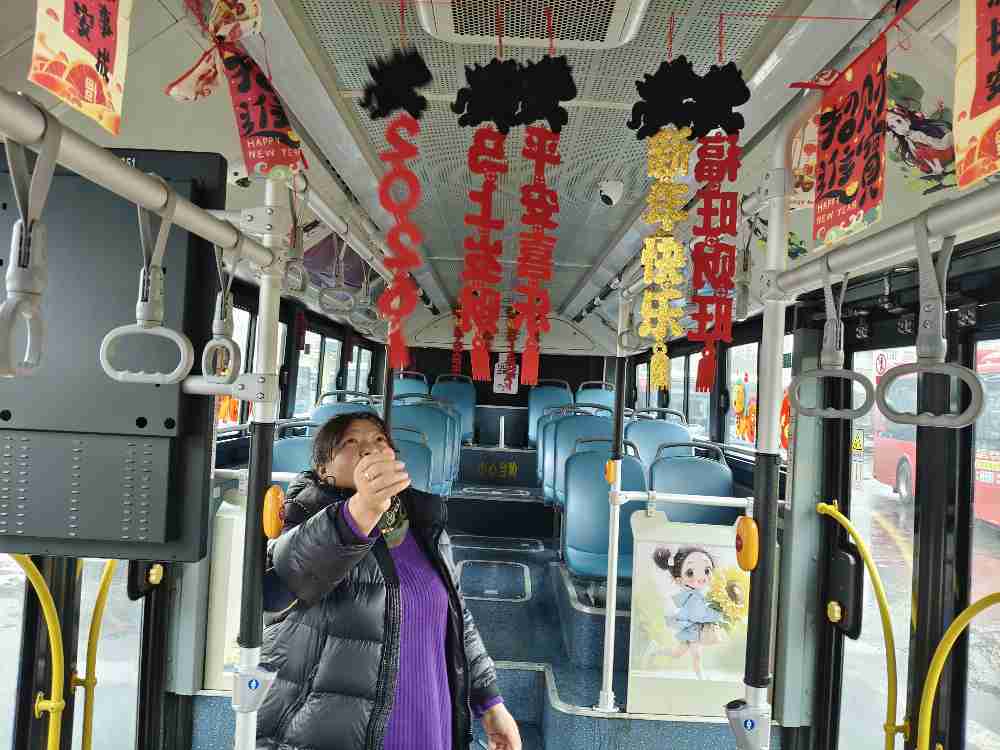 “马年就要到了,将车辆装扮得漂漂亮亮,有节日的氛围感,让乘客一上车就感受到年味,给平淡、忙碌的生活一丝短暂的休憩,看着乘客开心,我也就特别开心,一切的忙碌就觉得值了。”朱丽容朴实的话语道出了她的初心。她用创意和用心,让小小的公交车厢变成了传递温暖的移动驿站,不仅提升了乘客的乘车体验,也让每一次出行都充满了惊喜与感动。