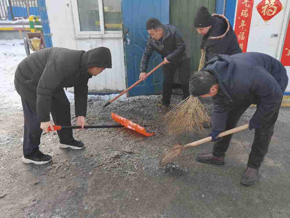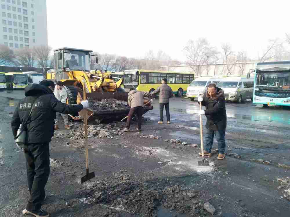 活动现场,突击队负责人率先垂范,队员骨干冲锋在前,志愿者踊跃参与,形成了“党建引领、全员参与”的攻坚合力。大家手持铁锹、推雪板等工具,按照“分区负责、协同推进”的原则,重点对车场出入口、车辆行驶通道、人行步道等关键区域进行集中清扫。凛冽寒风中,同志们不畏严寒、分工协作,有的奋力铲除压实冰路,有的有序清运雪堆,有的细致清理角落残雪,忙碌的身影在皑皑白雪中勾勒出动人的敬业图景。经过数小时连续奋战,场站内积雪全部清理完毕,通行道路恢复畅通,有效消除了车辆进出和驾驶员上下班的安全隐患。