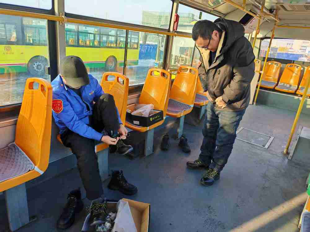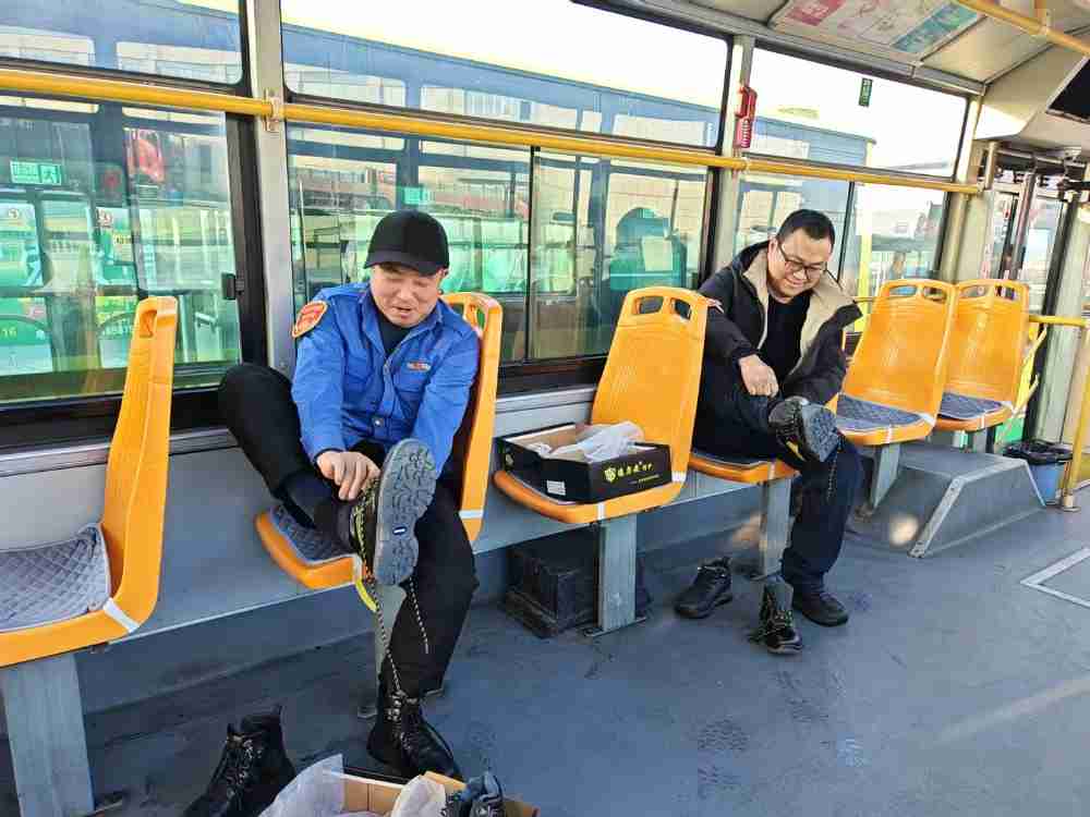 刚领到防寒保暖鞋的113路驾驶员俞辉和陈志远,难掩喜悦之情,迫不及待在车厢内试穿起来,来回走了几步感受着鞋子的贴合与舒适,连连赞叹:“这鞋绒毛厚实暖和又防滑,上脚太舒服了!以后上班再冷的天也有前行的动力!” 506路驾驶员杨震坦言:“感受到单位的关心,我们暖和了,工作起来更有劲了,对服务乘客的热情更高了。”