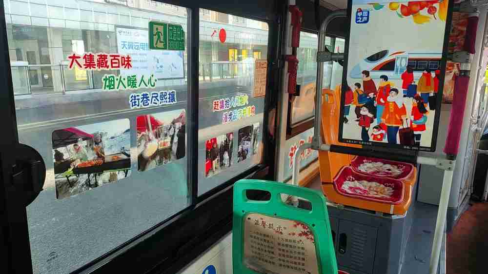 经营四部精心打造的2007路“带着爸妈赶大集”品牌线路尽显匠心巧思与文化底蕴。车身采用喜庆大气的大红色为主色调,呼应丙午马年的红红火火,将节日氛围与真挚期许融入出行途中,车辆统一张贴“带着爸妈赶大集”标识,车厢内车厢内精心张贴孝老爱亲民间小故事,让乘客在乘车间隙感受传统文化熏陶。车窗玻璃上展示酉众和集市实景图片,鲜活呈现集市上的特色小吃、手作工艺、农产品与热闹场景,让乘客未到集市,先感其氛,生动诠释“人间烟火气,最抚凡人心”,营造出浓厚的节日氛围;配备爱心扶手、便民医药箱、防滑垫等设施,安排党员志愿者全程随车,提供扶老携幼、年货搬运、线路咨询等贴心服务,全程守护出行安全。