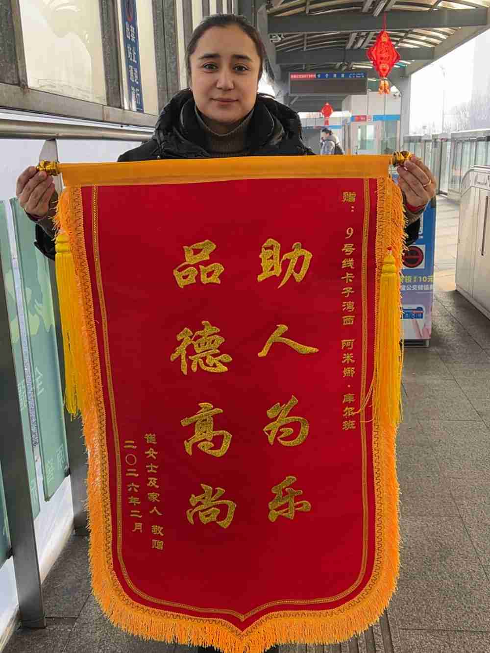2月3日上午11:15,孩子家长崔女士及家人专程来到卡子湾西站台,将一面印有“助人为乐,品德高尚”的锦旗送到阿米娜·库尔班手中,对她认真负责的工作态度和热心助人的行为表示最诚挚的感谢。崔女士激动地说:“孩子走失后我们全家都急坏了,多亏了阿米娜同志的悉心帮助,让孩子平安回家,这份恩情我们永远记在心里。”