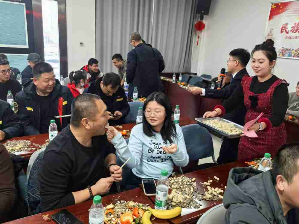 在“民族团结包饺子”互动游戏中,各族职工分工协作、默契配合,擀皮、包馅一气呵成。陈妍君笑着说:“和维吾尔族、哈萨克族的同事们一起包饺子,看着不同民族的手法包出的饺子,就像我们的大家庭一样,各有特色又紧紧相依。”帕丽丹·克依木也感慨道:“平时大家在岗位上并肩作战,今天在餐桌上一起团圆,这种温暖让我觉得特别融洽。”