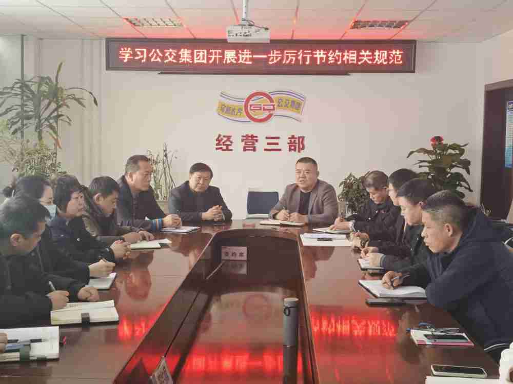 为深入贯彻落实中央八项规定精神,牢固树立过紧日子、勤俭办工思想,切实加强成本管控、弘扬勤俭节约优良作风,3月2日,公交集团经营三部组织机关全体干部职工召开专题会议,集中学习厉行节约、反对浪费相关制度规范。