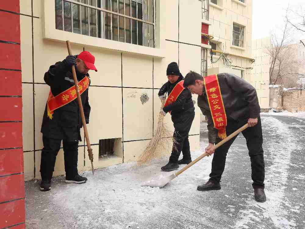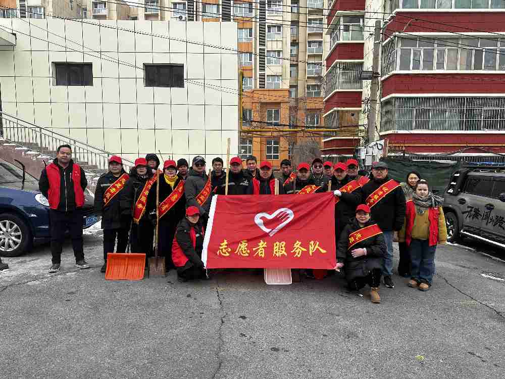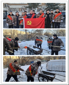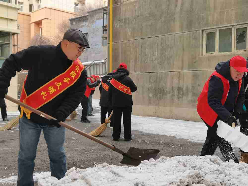 党旗飘扬、胸前党员徽章鲜红闪亮。志愿者们分工协作、配合默契,胡新军手持铁锹奋力铲除坚冰,朱江永挥舞扫帚清扫积雪,姚立忠推着雪车及时清运雪堆。面对顽固难除的黑冰层,大家弯腰弓背、反复用力,铁锹与地面碰撞出清脆而有力的声响。虽然刺骨的寒风冻红了大家的脸颊,但没有一人叫苦、没有一人退缩。副主任游唤、刘泽宇更是带头冲锋在前,带领志愿者重点清理主干道、单元出入口、坡道台阶等关键区域,做到全面清理积冰、不留安全隐患。