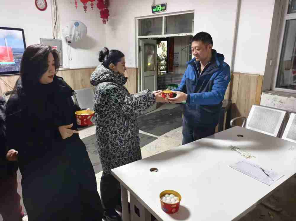 当日清晨,红二电场调室内暖意融融、温情涌动,处处洋溢着喜庆祥和的节日氛围。“穆书记,这元宵煮得香甜可口,吃在嘴里,暖在心里!”“有组织时刻惦记着我们,再辛苦也觉得值得!”活动现场,欢声笑语此起彼伏,温馨画面随处可见。42车队党支部书记穆志刚与车队管理人员,将一碗碗冒着热气、满载关怀的元宵逐一送到驾驶员手中,与大家亲切拉家常、问冷暖、话心声,现场气氛热烈而温暖。