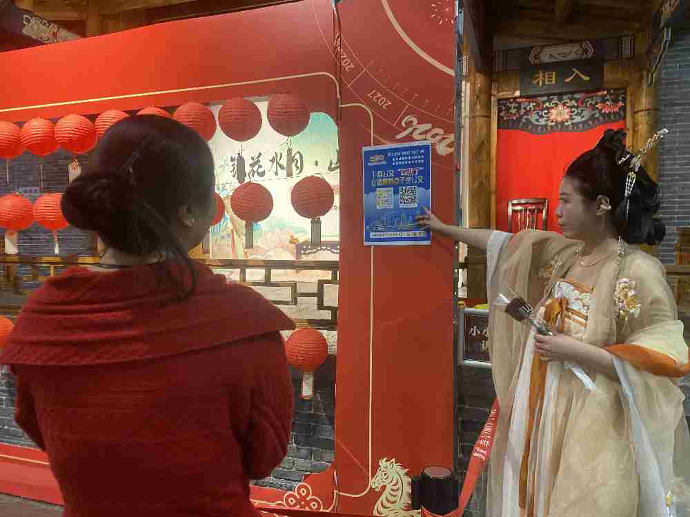 活动现场以红色灯谜墙、汉服巡游为背景,将“车来了”APP宣传海报融入其中,形成“传统文化+智慧出行”的独特氛围。市民在猜灯谜的同时,可直观看到APP宣传信息,实现“沉浸式”推广。