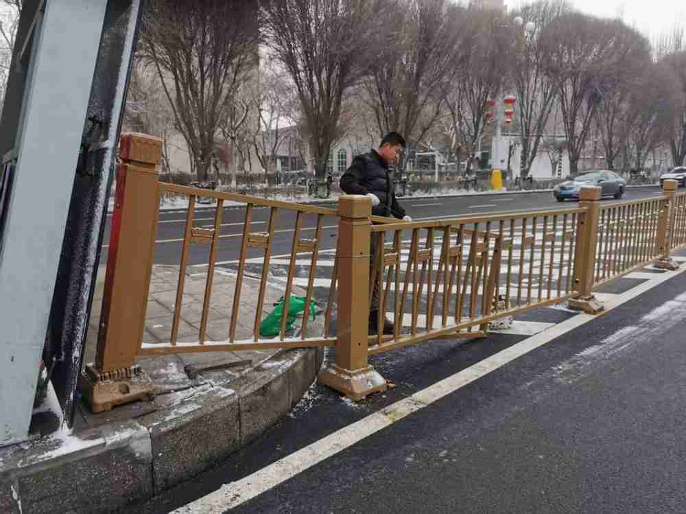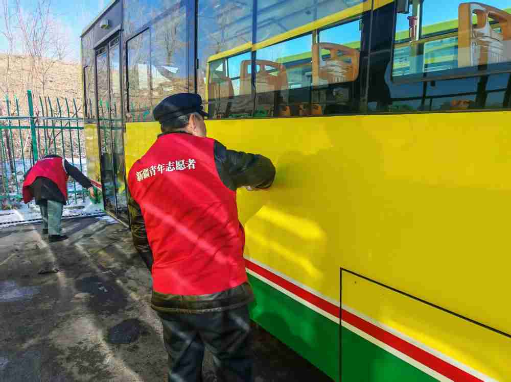 活动当天,寒风料峭,却丝毫阻挡不住志愿者们高涨的服务热情。大家身着统一志愿马甲,手持扫帚、水桶、抹布等工具,迅速投入环境整治工作。志愿者们分工明确、协作有序,有的提水擦拭公交护栏,细致清理清雪作业后残留的顽固污渍,即便寒风刺骨、擦拭后的表面即刻结冰,依然坚守岗位、认真作业;有的手持扫帚,全面清扫站台积雪、烟头及各类杂物,做到清扫无死角、环境无盲区。