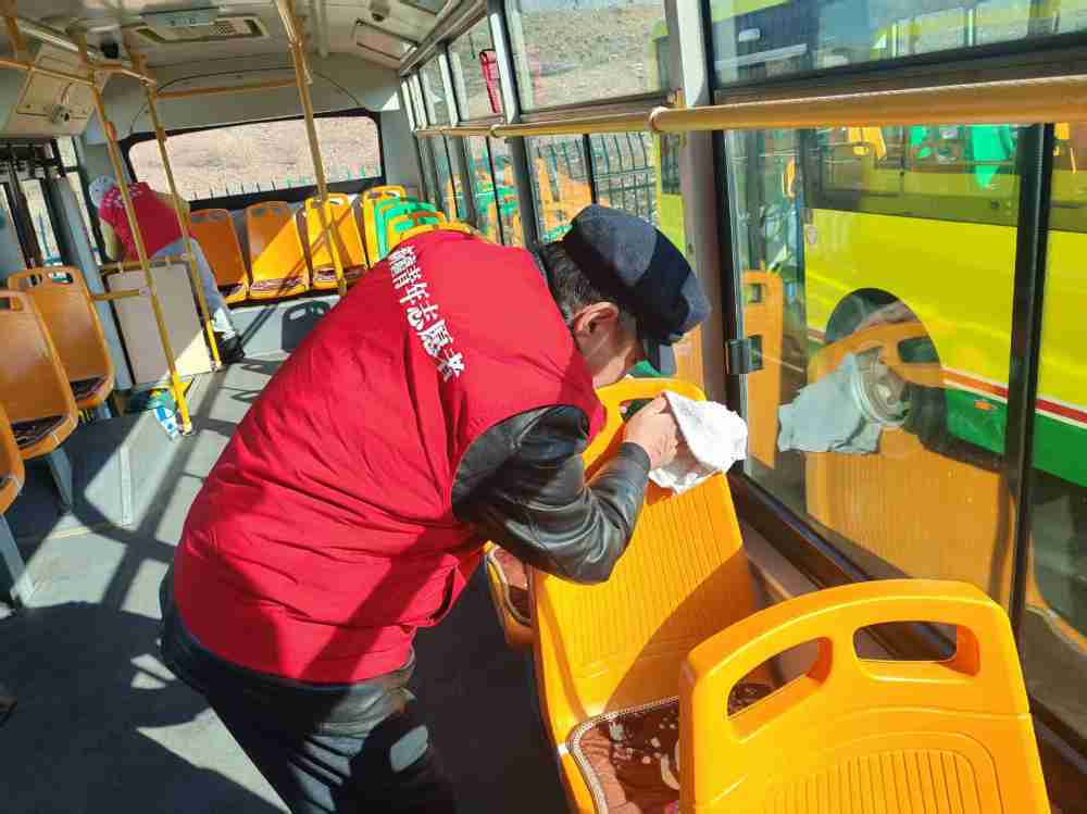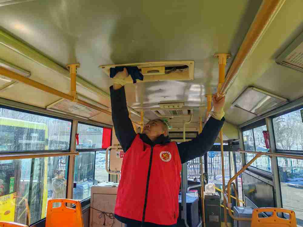 活动中,志愿者们身着志愿马甲,手持扫帚、抹布、水桶、垃圾袋等工具,分工协作、干劲十足。大家对公交车进行全面清扫,面对车厢内外,志愿者们耐心细致,从车窗玻璃、扶手栏杆到座椅缝隙、地板角落,逐一进行深度清洁,力求让每一辆运营车辆都窗明几净,以最佳状态迎接每一位乘客。