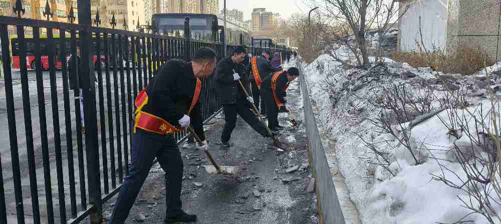 行动现场,志愿者们不畏严寒、冲锋在前,手持铁锹、冰镐、推铲等工具分工协作、默契配合。大家聚焦结冰重点路段,奋力凿碎坚硬冰层,及时清扫碎冰残渣,做到不留死角、不漏一处,以十足干劲全力清除路面冰雪。经过集中清理,原本湿滑危险的巷子路面恢复平整干爽,行人出行安全隐患得到彻底消除,为周边居民营造了安全、便捷、整洁的通行环境,用实际行动展现了公交人的责任与担当。