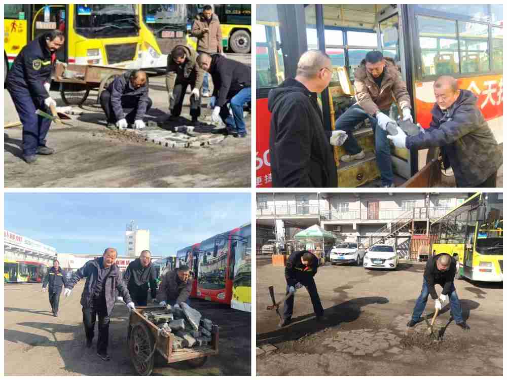 隐患就是命令,安全就是责任。经营二部车队党支部紧扣“降本增效”与“安全生产”两大主题,不等不靠,主动与兄弟单位联合,召集“红石榴党员突击队”的队员们带着铁锹、镐头等工具,将用于填补坑洼的方砖、碎石等材料从六道湾北大门拉载到华凌场站。大家分工协作,有的负责用石镐挖开下沉和凹陷的路面、有的负责将石料用手推车一车车运到要修复的路段,还有的则蹲下身子仔细将坑洼处填平、夯实。在兄弟单位的通力配合下,经过2个小时的连续奋战,场站内多处坑洼路面得到了有效修复,原本颠簸难行的路段变得平整坚实。“路面平整了,我们开车进出场心里也踏实多了!”看着焕然一新的路面,开车经过的驾驶员们纷纷竖起大拇指。
