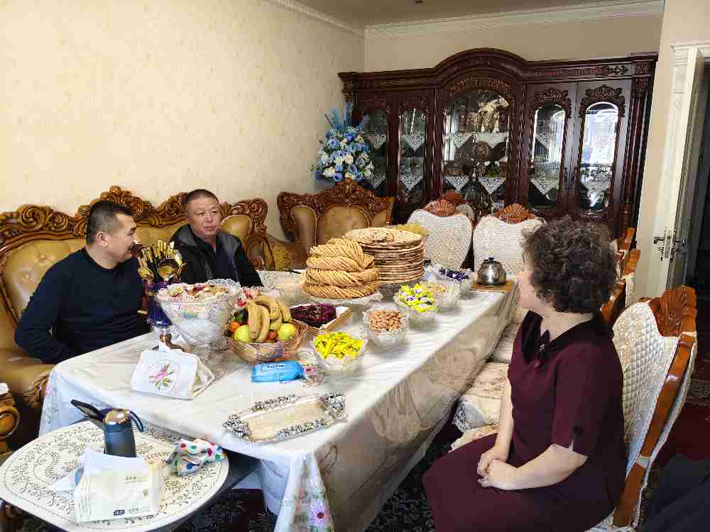 “艾买提·艾买尔肉孜节到了,我们代表车队来看望你和家人,祝你节日快乐、阖家幸福!”车队队长王俊江亲切说道。“谢谢领导惦记,还专门到家里来送祝福,太感动了!”艾买提·艾买尔连忙起身招呼,脸上满是笑容。