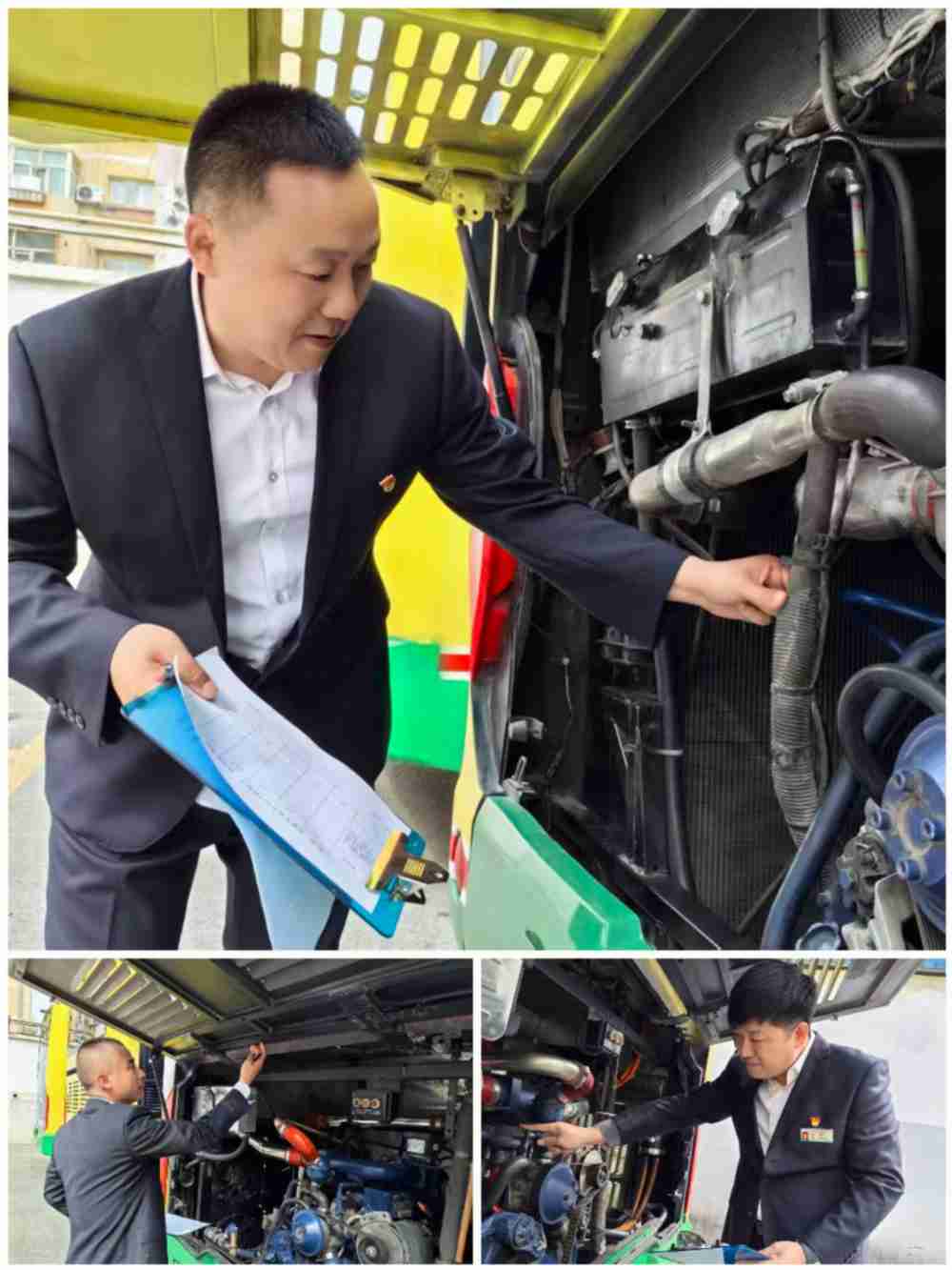 本次整治行动坚持高标准、全覆盖。现场全员分工协作,干劲十足,按照“不留死角、不留盲区”的原则,对车辆进行深度清洁。重点针对发动机仓、压包、变速箱等油泥堆积厚重、容易藏污纳垢的关键部位,进行仔细铲除与清洗,彻底清理机械隐患;同时,对车厢内饰、座椅扶手、地板、车身外观及轮胎轮毂进行全面擦洗与消杀,确保车辆内外干净整洁、舒适卫生。