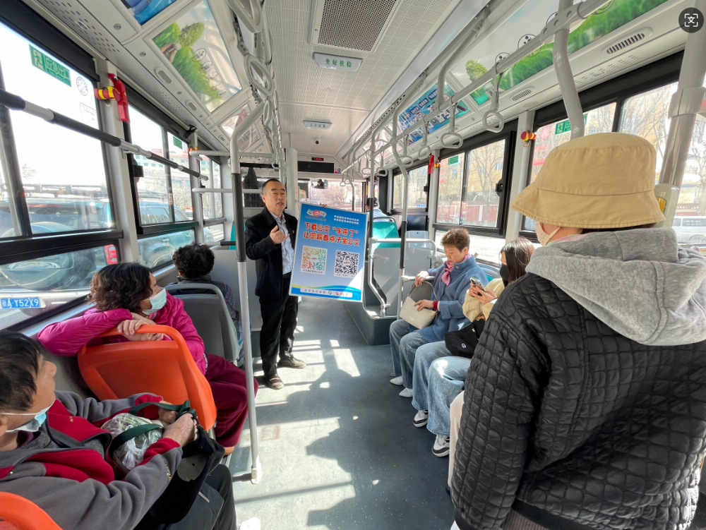 在公交车厢内,公司经理赵延昌带头深入一线,利用“车来了”APP宣传板,向乘客直观展示在公交车厢内,公司经理赵延昌带头深入一线,利用“车来了”APP宣传板,向乘客直观展示下载后即可使用的线路查询、实时查询、换乘查询、到站提醒等核心功能,并结合“让您听着手机坐公交”的便捷体验,引导乘客扫码下载。赵延昌经理与乘客亲切交流,现场演示操作步骤,认真解答疑问,赢得了乘客的积极响应。