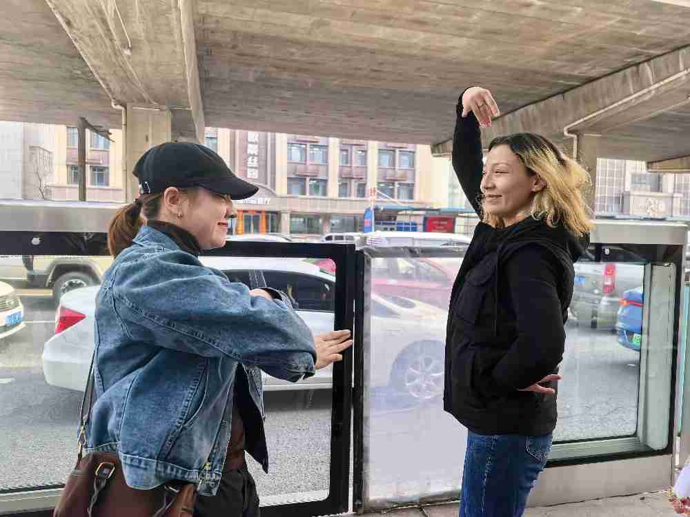 “阿姨,您到哪里下?”在行驶途中,白丽黎贴心地询问了老人的下车站点,并默默记在心里。当车辆抵达哈密路站点时,白丽黎师傅再次起身,来到老人身边。她先稳稳地将推车搬下车,又转身搀扶老人,叮嘱道:“慢一点,小心台阶,注意安全。”