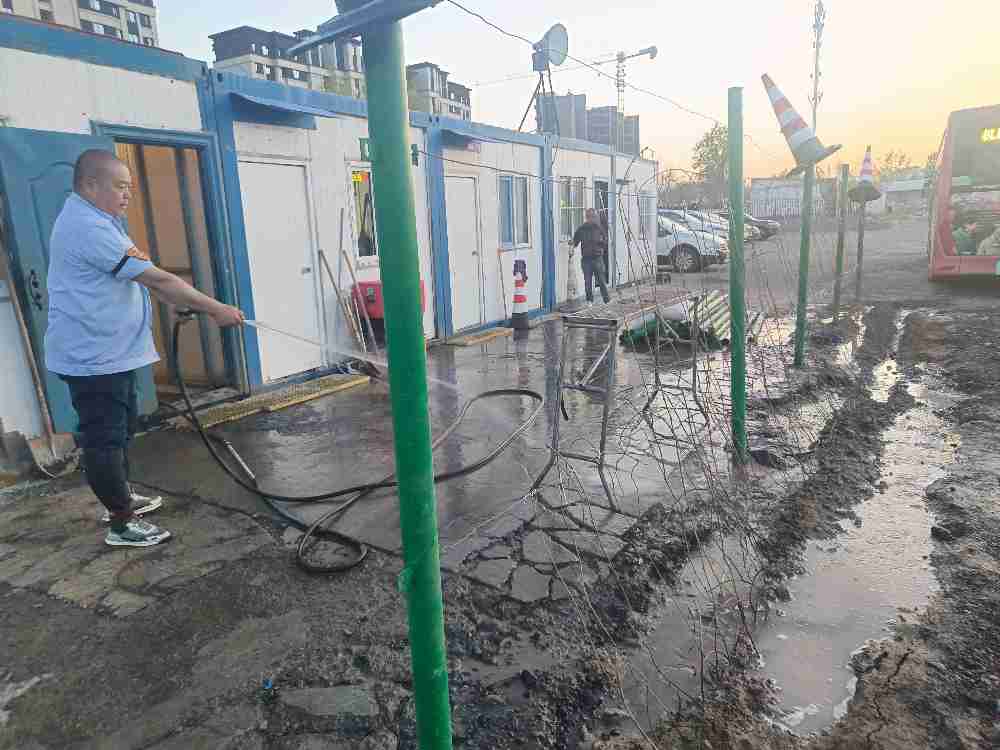 临近下班,场区外围道路出现多处坑洼,影响车辆通行与安全。副经理李明山主动带领艾耐师傅,用砂石对坑洼路面进行填补、平整。两人配合默契,一铲一填、反复夯实,直至路面平整顺畅,彻底消除行车隐患。