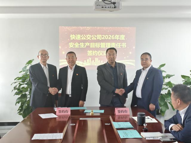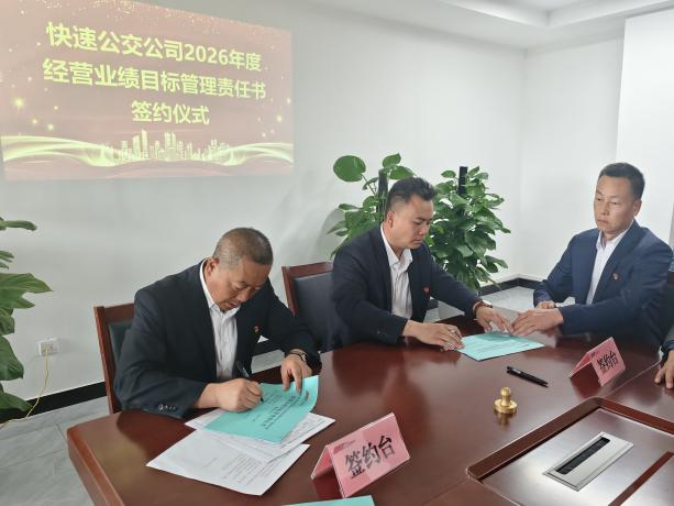 为全面贯彻落实集团公司高质量发展战略部署,压实责任链条、激发内生动力,4月23日下午,快速公交公司组织召开综合目标管理契约化责任签约会。会议聚焦经营业绩、安全生产、党建目标及党风廉政建设四大核心模块,通过“签下责任书、立下军令状”的形式,进一步明晰方向、传导压力、汇聚合力。公司领导班子、各车队队长、机关部室负责人参加会议。
