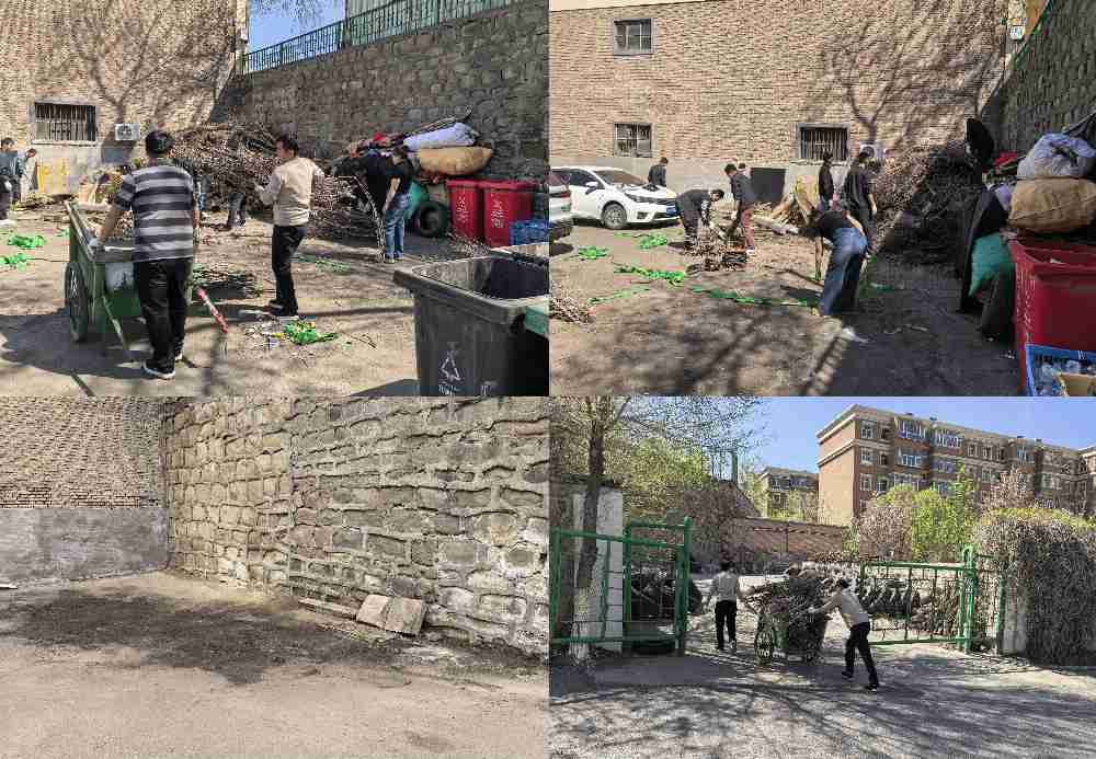 整治现场,在技术质量管理科工作人员陈辉和托合提·依斯拉不里的带领下,大家分工协作,手持扫帚、铁锹、耙子等工具,对场区周边石墙下、边角区域、闲置空地、排水沟旁等长期被忽视的卫生死角展开拉网式清理。大家有的搬运堆积的枯枝败叶、废弃木料与杂物;有的清扫散落的垃圾;有的对清理出的易燃废弃物品进行分类打包、集中清运,现场干劲十足、秩序井然。面对石墙下堆积的枯枝、缠绕的藤蔓和混杂的生活垃圾,大家主动克服地形复杂、杂物沉重等困难,进行分类整理、合力搬运,彻底清除了这一区域的易燃物,有效消除了潜在的火灾隐患。经过一整天的集中整治,场区环境面貌焕然一新,原本杂乱的区域变得整洁有序,不仅有效改善了场区整体环境,也为干部职工上了一堂生动的安全与责任实践课。